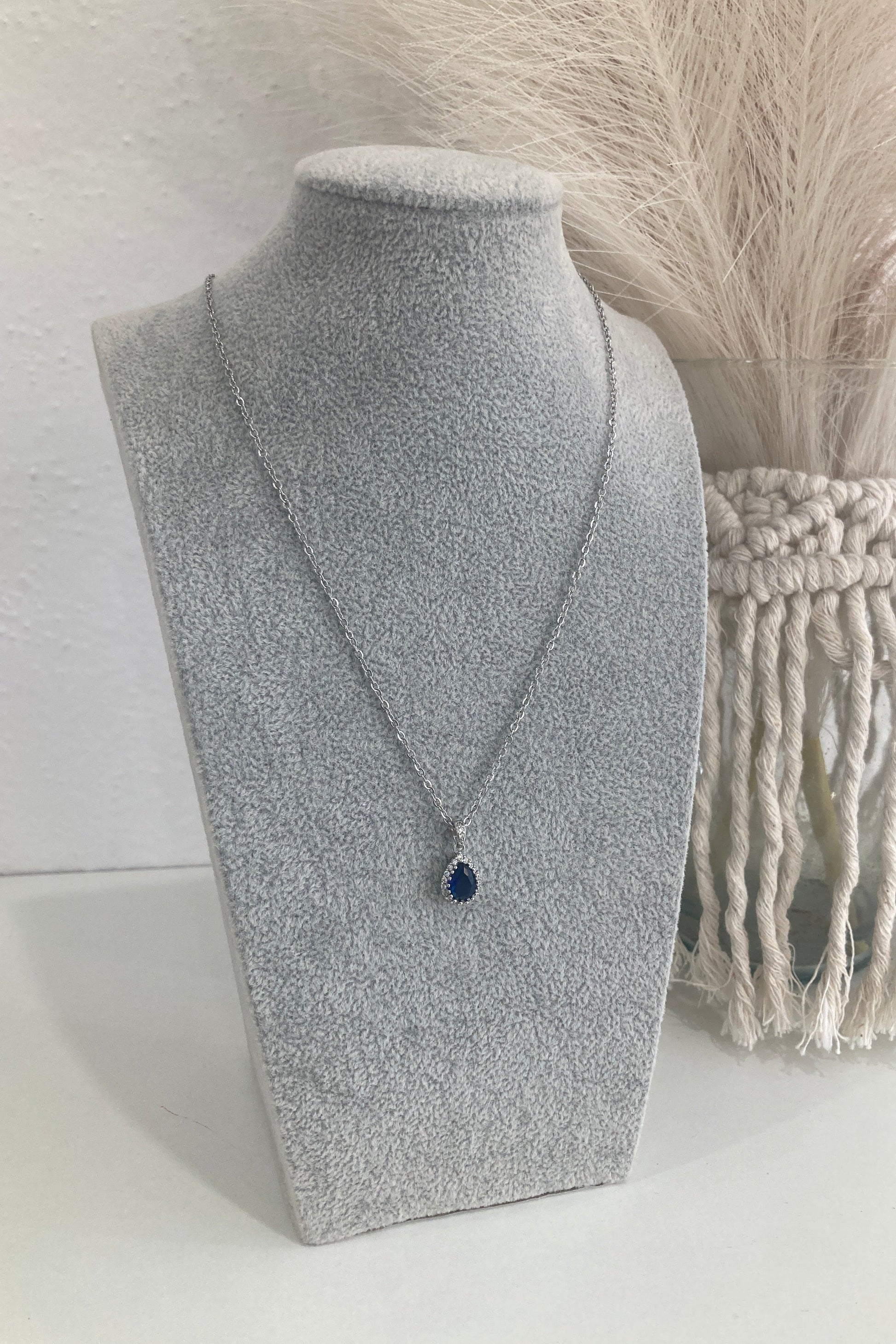 Elaborado con circonia de lujo en un hermoso tono azul y acabado en rodio platinado, este collar no solo es deslumbrante, sino también duradero.