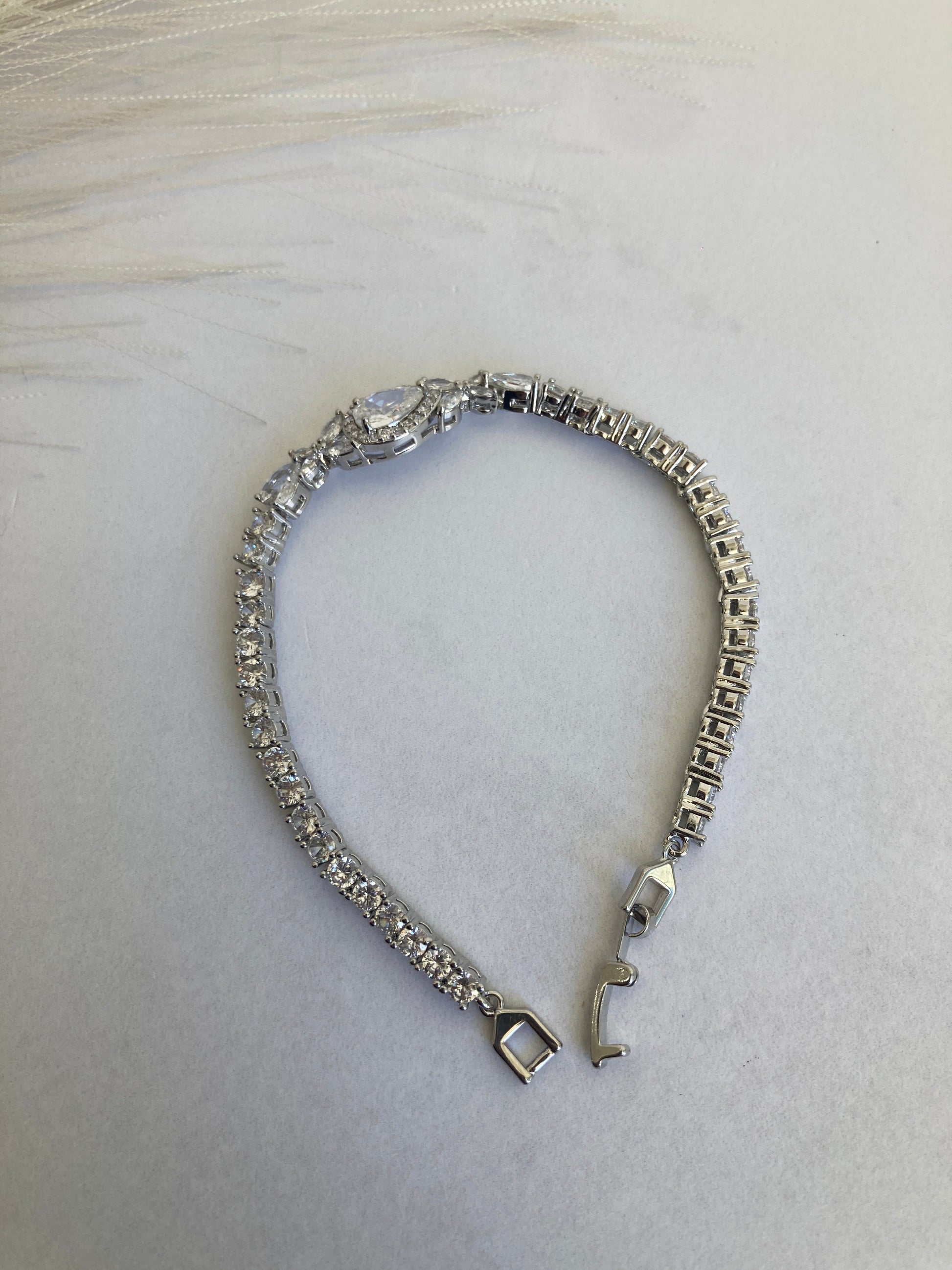 Hermosa pulsera elaborada en circonia de excelente calidad con baño de rodio platinado.