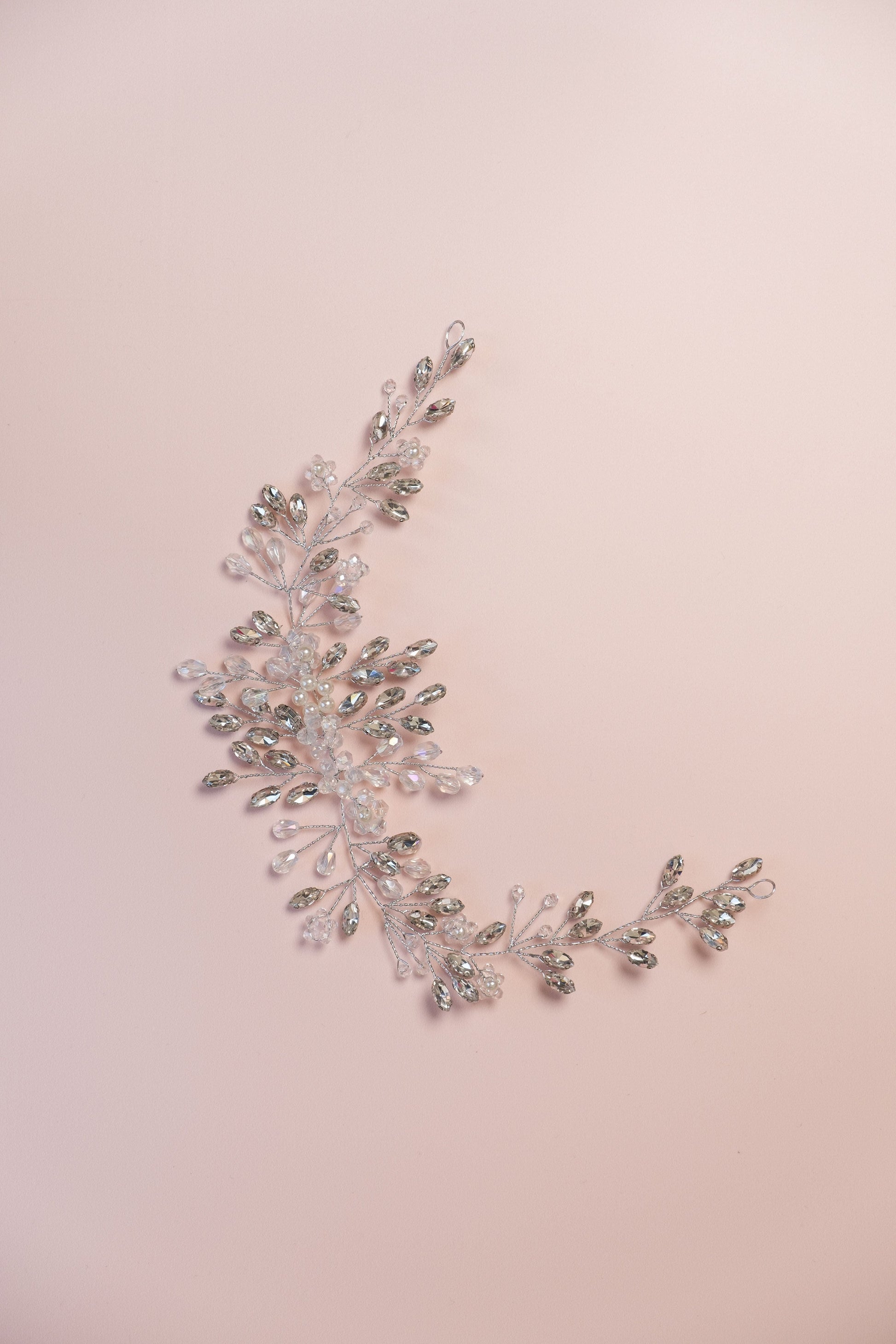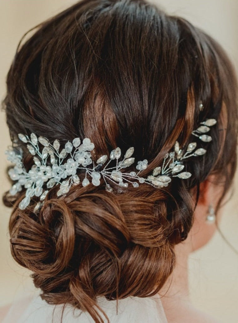 Precioso tocado finamente confeccionado y elaborado con cristales y diamantes artificiales.