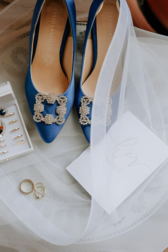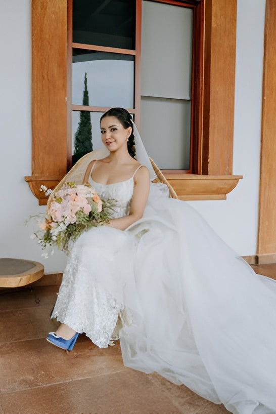 Hermosos zapatos hechos a mano que combinan lo mejor del diseño tipo stiletto y herraje con tacón ancho para mejor comodidad de las novias de hoy.